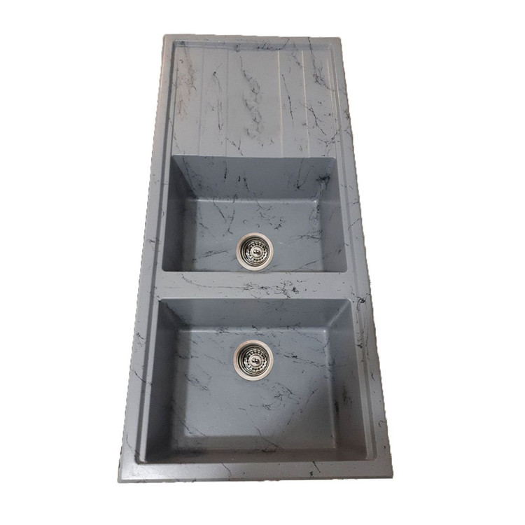 جنس گرانیتی این سینک باعث میشود در برابر خط و خش و لکههای روزمره بسیار مقاوم باشد و رنگ خاص طوسی با رگههای مشکی، جلوهای متفاوت به آشپزخانه شما میبخشد.