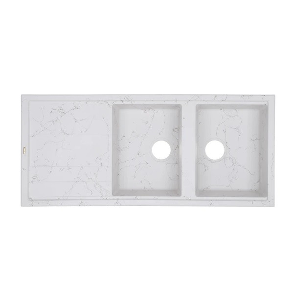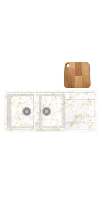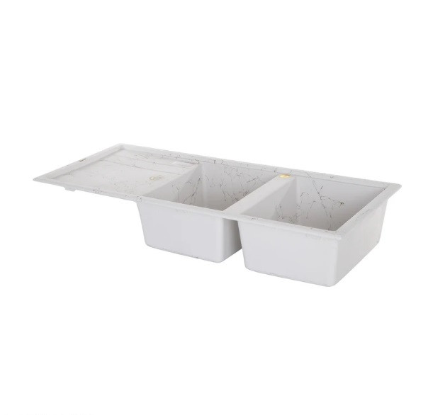 اگر دنبال سینکی خاص، مقاوم و لوکس برای آشپزخانه هستید، این مدل میتونه بهترین انتخاب باشه. طراحی سفید با رگههای طلایی جلوهای بسیار شیک و مدرن ایجاد میکنه که آشپزخانهتان را متفاوت و چشمگیر میسازد.