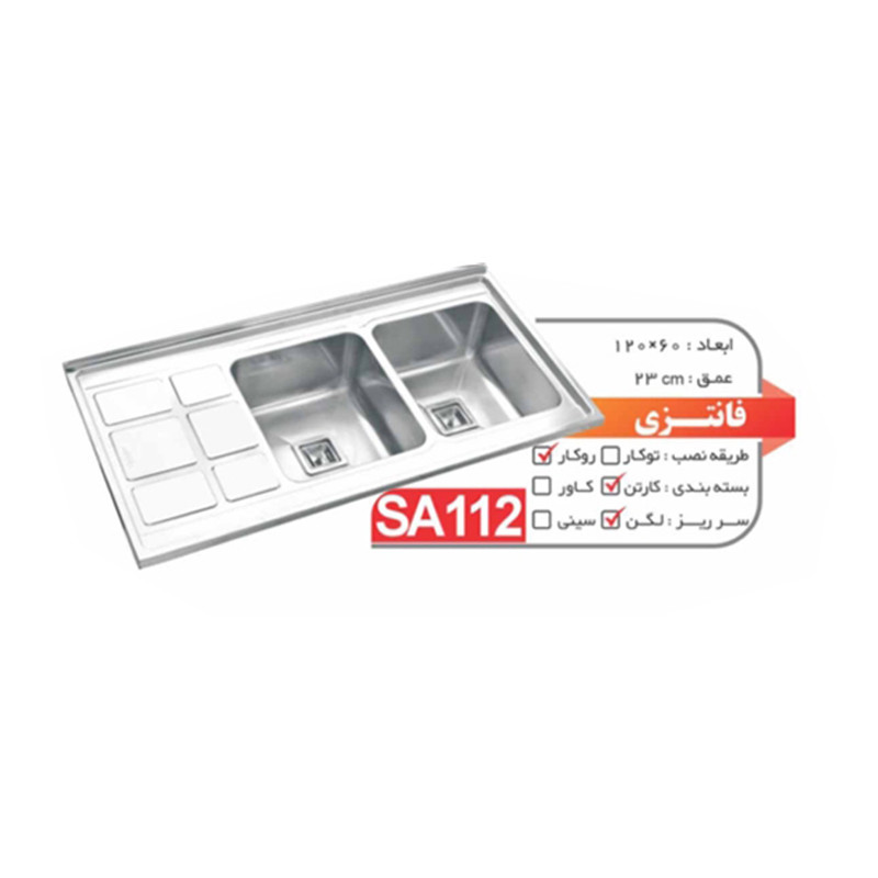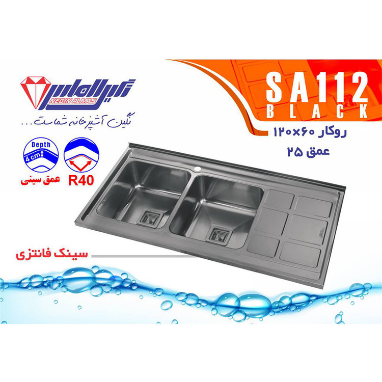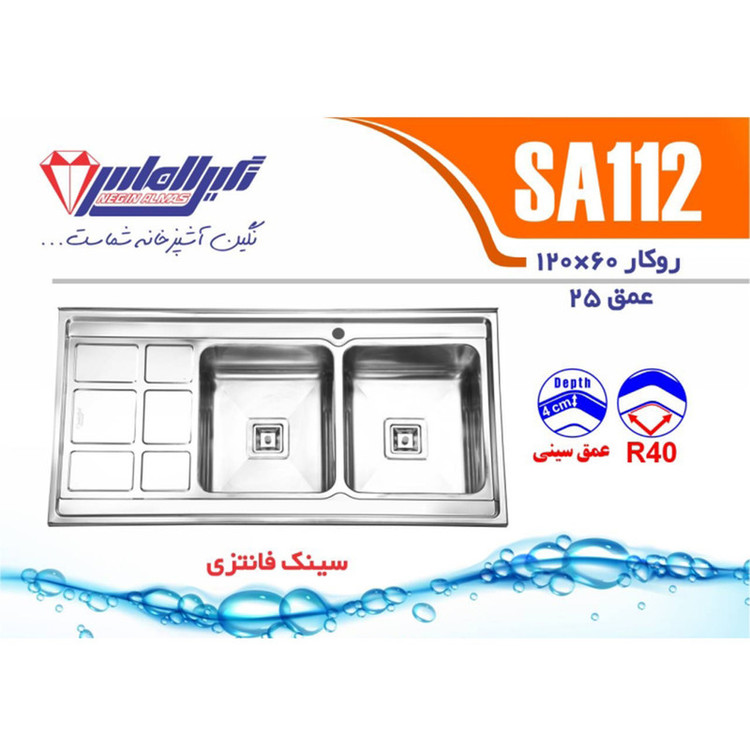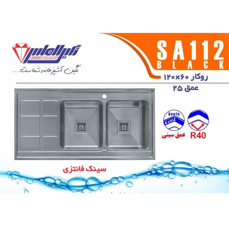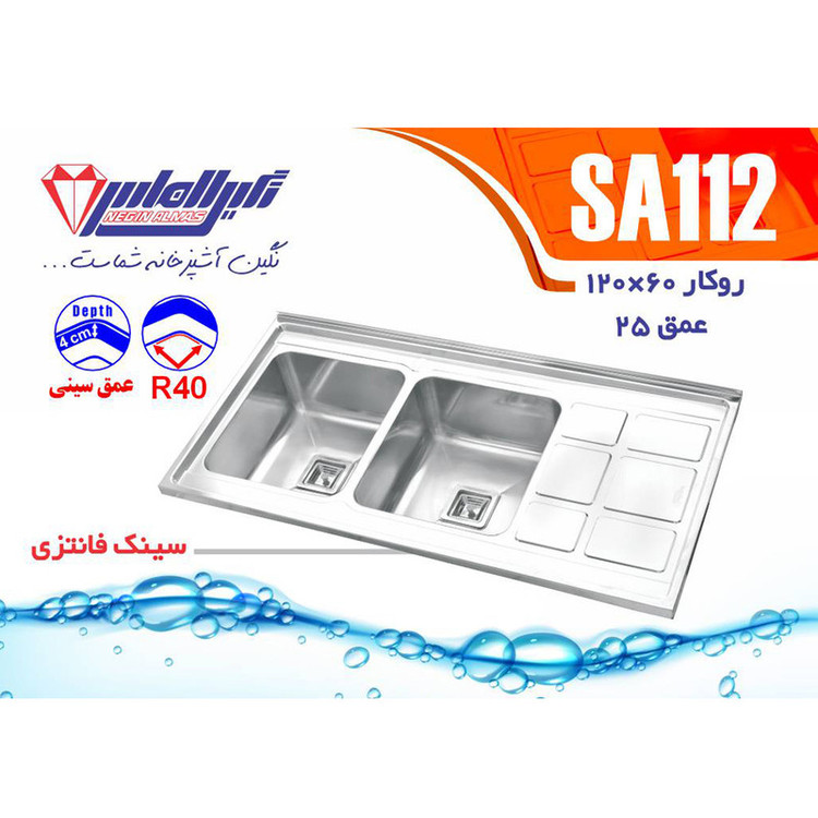 سینک ظرفشویی استیل روکار دو لگنه نگین الماس مدل SA112