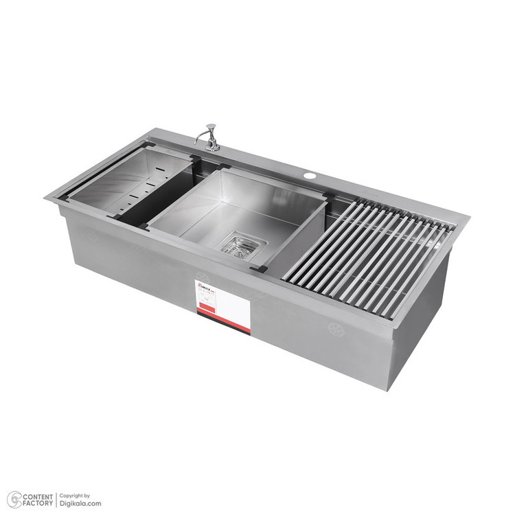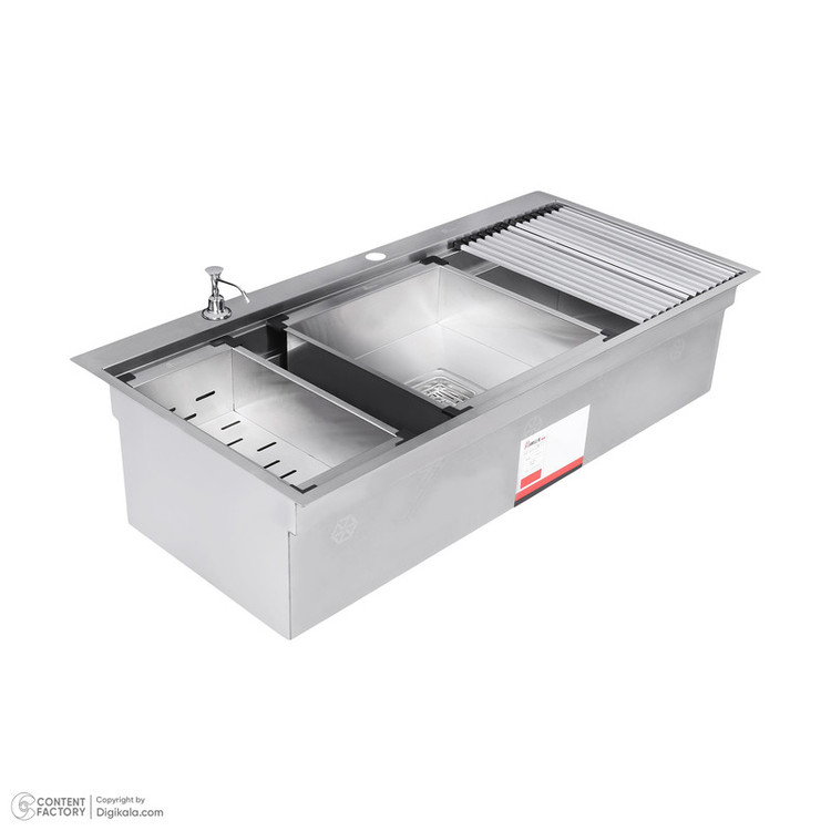 1 لگن (وان) + 1 لگن داخلی متحرک با عمق 11cm / ابعاد : 104×50×25 / محل نصب شیر: روی سینی / ظرفیت لگن ها: 90 لیتر / مدل کاملا دست ساز (باکس پله دار)