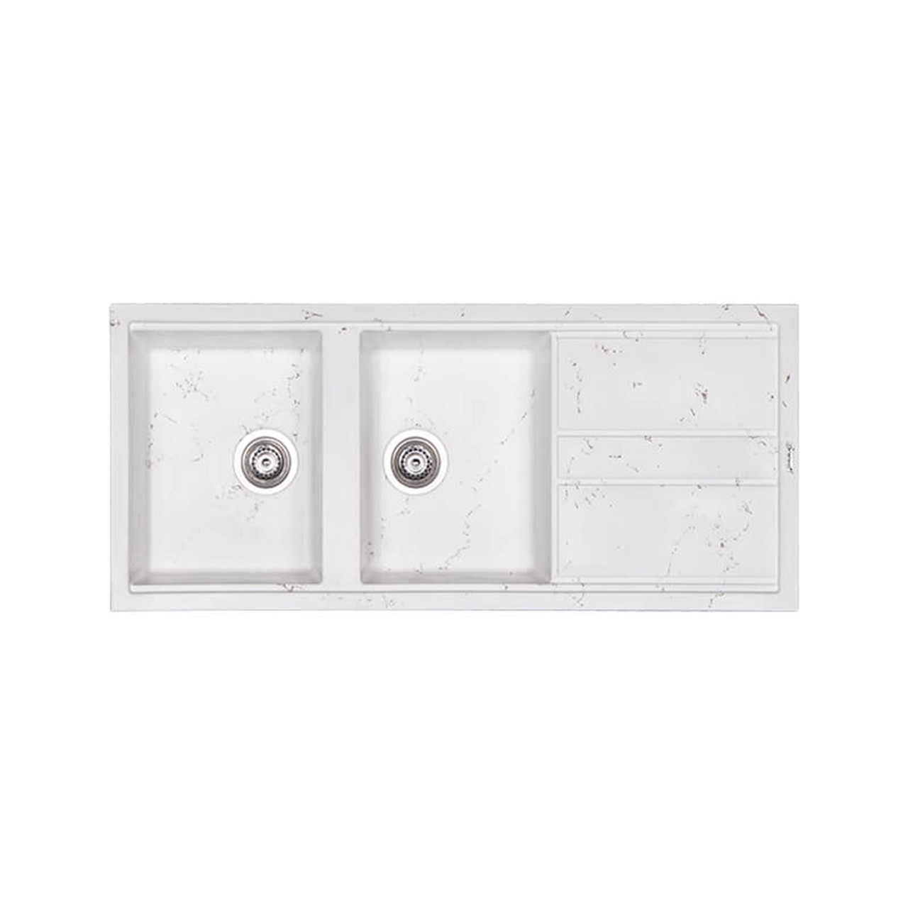 سینک گرانیتی دو لگن مدل ۴ خط لوتوس | سفید با رگه های مشکی – زیبایی، دوام و کارایی در یک قاب
